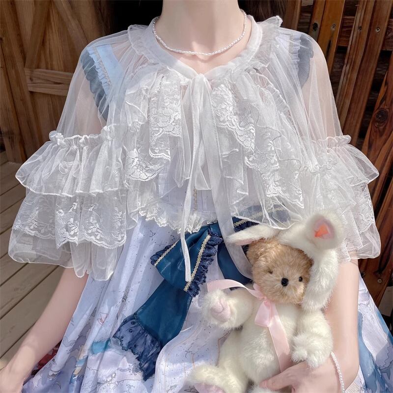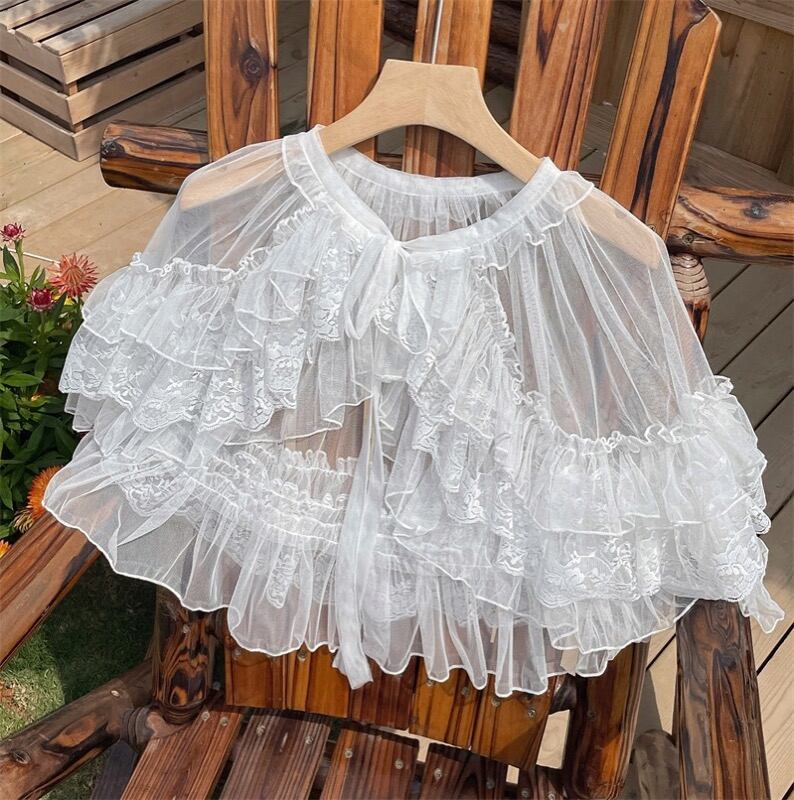 ボレロ トップス マント ショール レース シースルー レイヤード フリル レディース #7