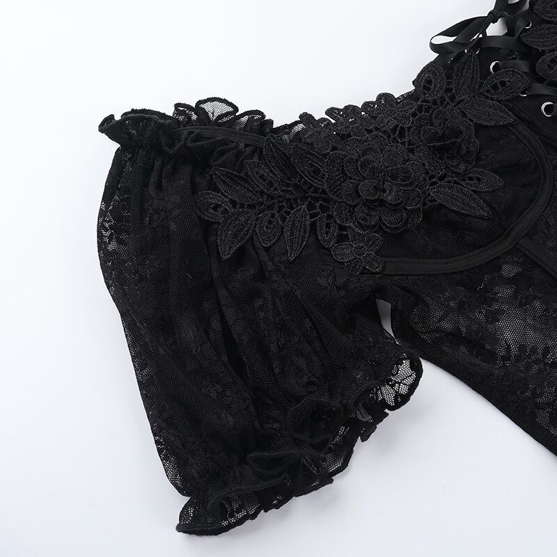 トップス シャツ オフショルダー レース シースルー 細身 スリム タイト レディース #6