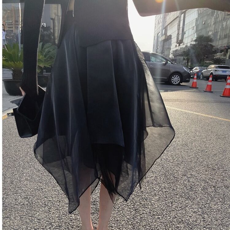 スカート ハイウェスト レース レイヤード Aライン 不規則 フレンチファッション #9