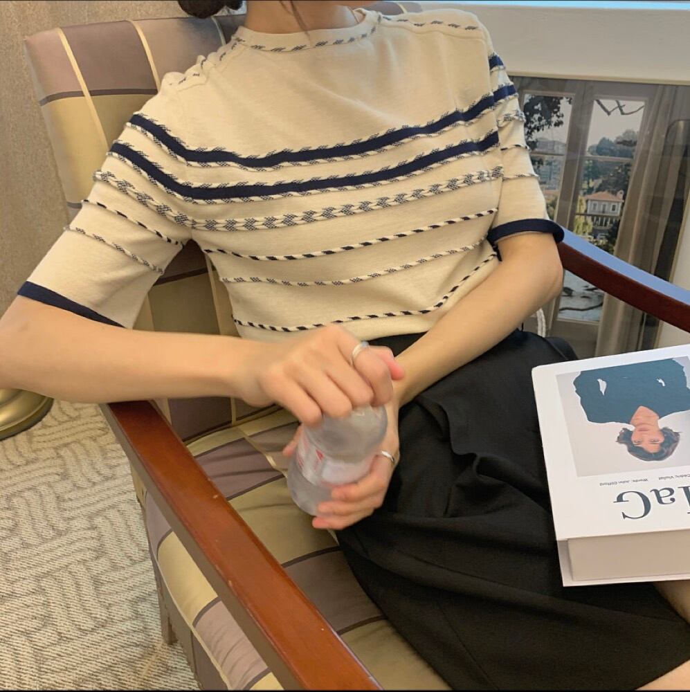 トップス サマーニット Tシャツ クルーネック ニット 半袖 細美 スリム レディース #28
