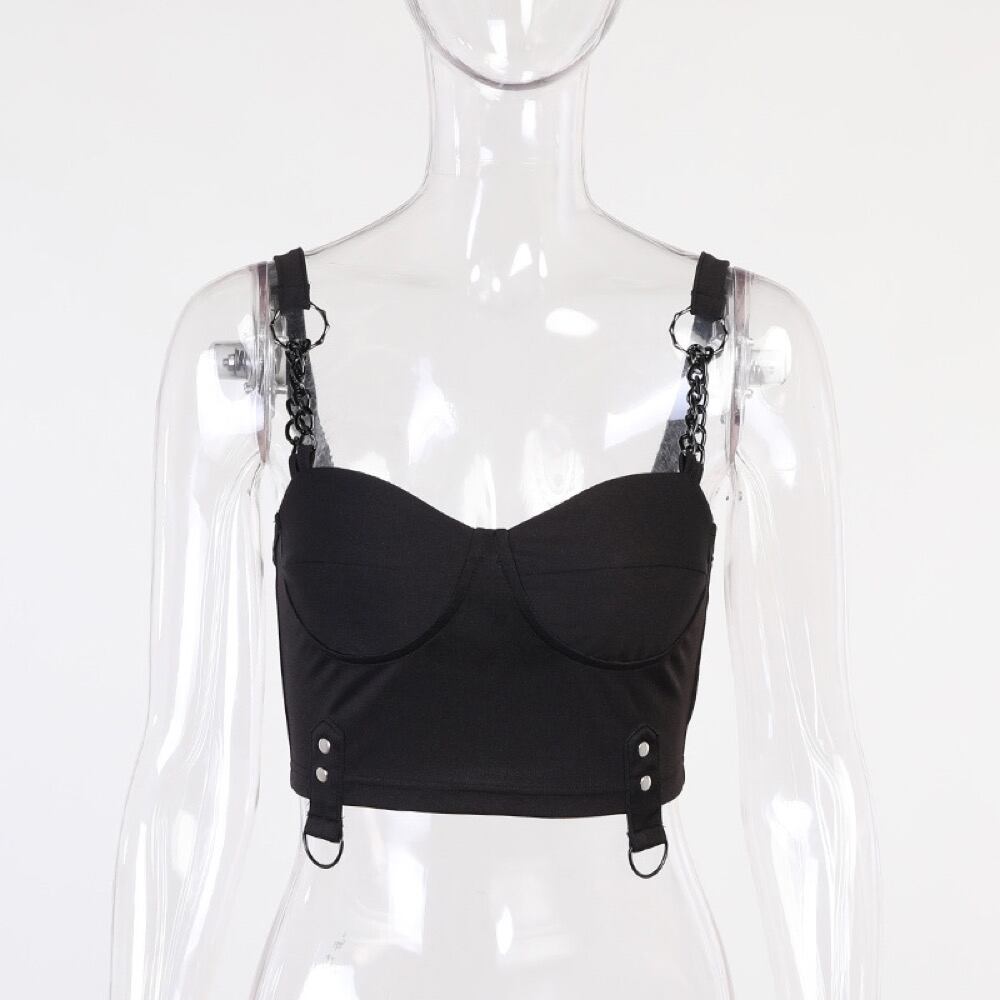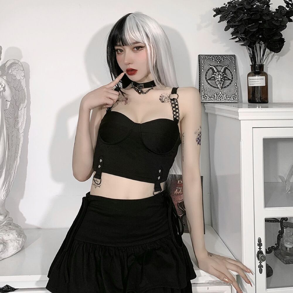 トップス キャミソール 見せブラ ショート丈 暗黒系 インナー チェーン レディース #27
