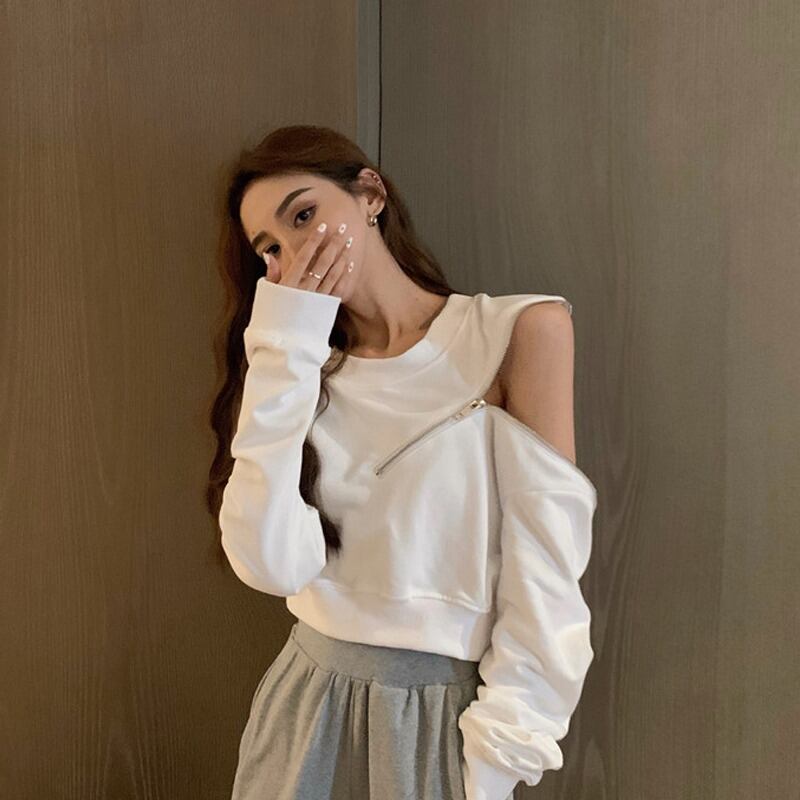 トップス スウェット トレーナー ジッパー クルーネック ラウンドネック レディース #37