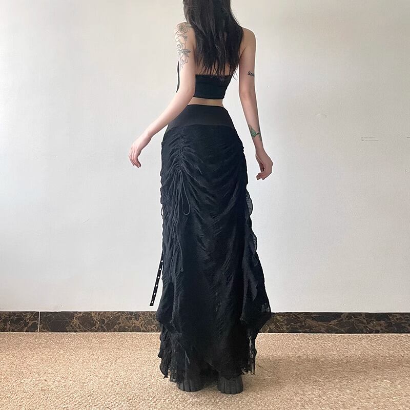 スカート ハイウェスト ロングスカート Aライン レース ベルト レディース #24