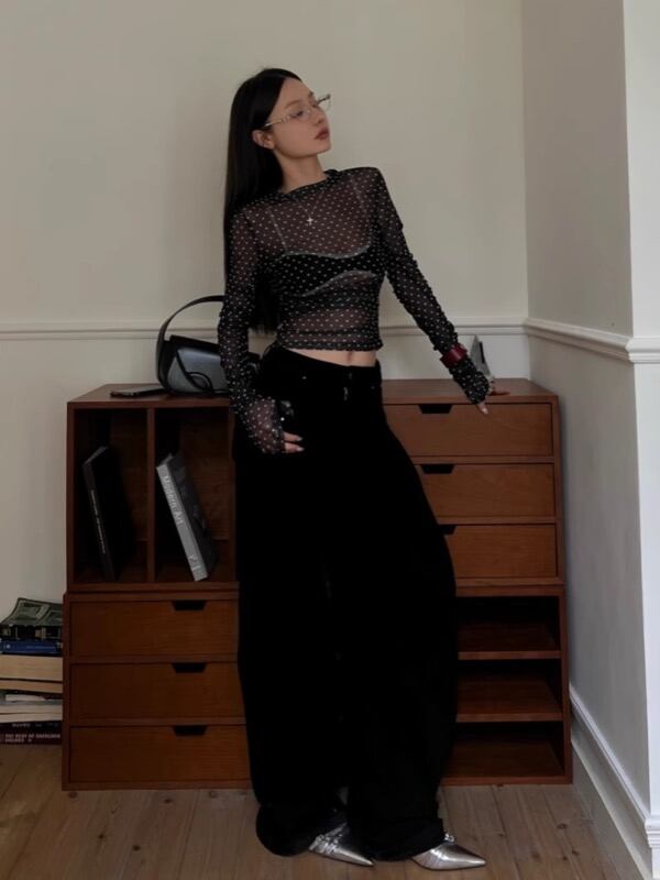 トップス カットソー ロンT Tシャツ 薄手 レース クルーネック ラウンドネック レディース #26