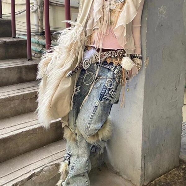 パンツ ボトムス ズボン デニム ジーンズ 起毛 パンクファッション レディース #8