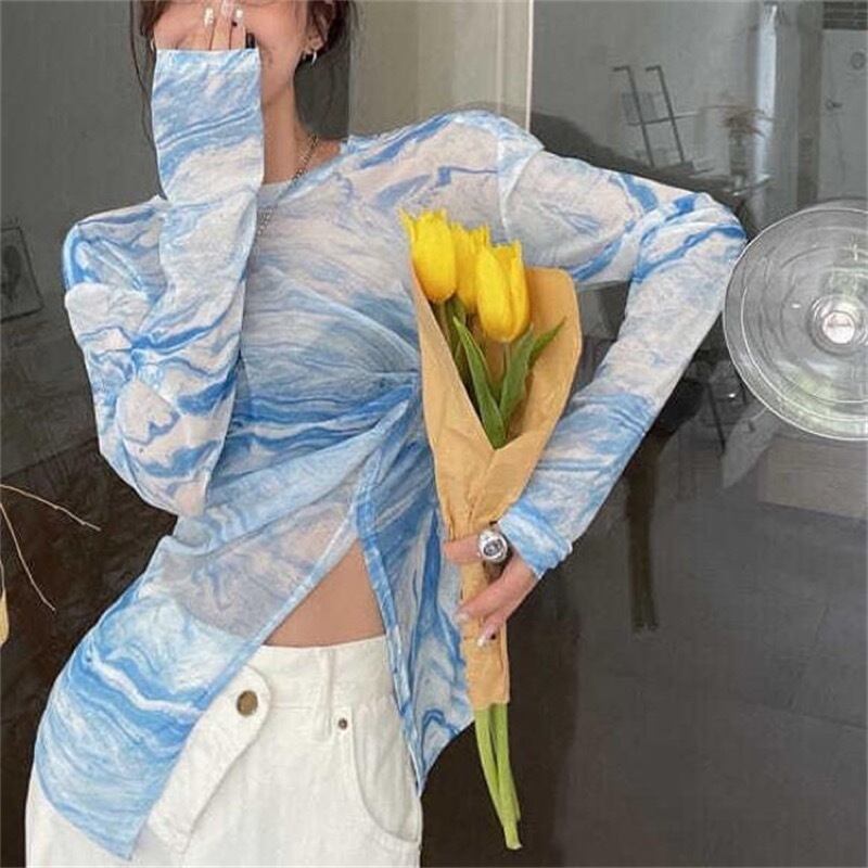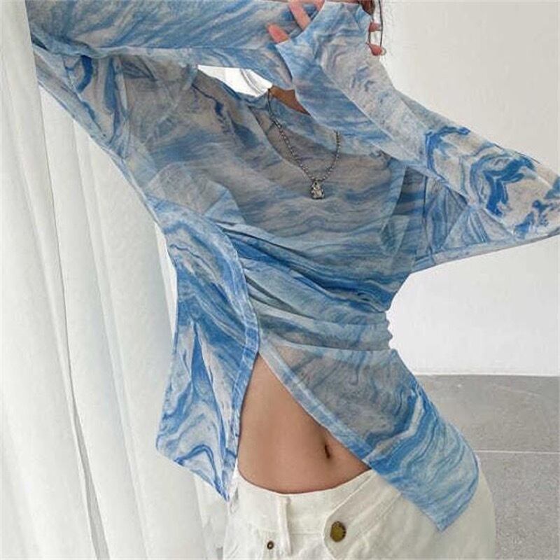トップス カットソー Tシャツ ロンT レース シースルー 細身 スリム レディース #36