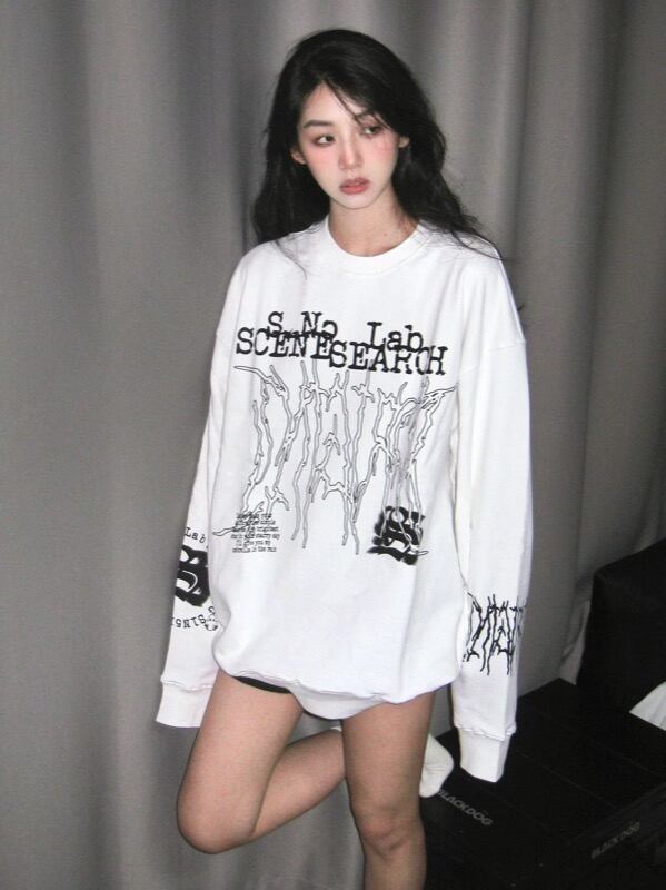 トップス カットソー Tシャツ ロンT プリント 長袖 クルーネック ラウンドネック レディース #14
