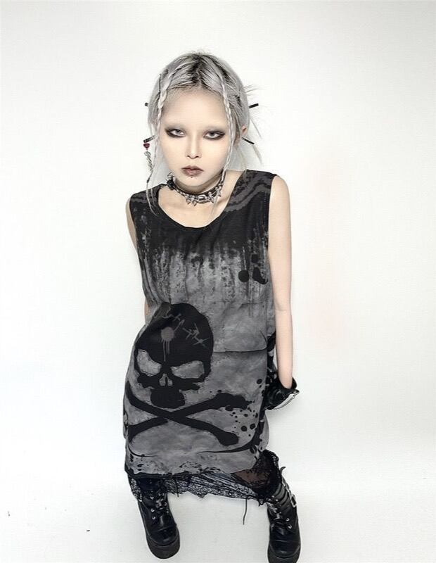 トップス カットソー ノースリーブ タンクトップ プリント クルーネック レディース #21